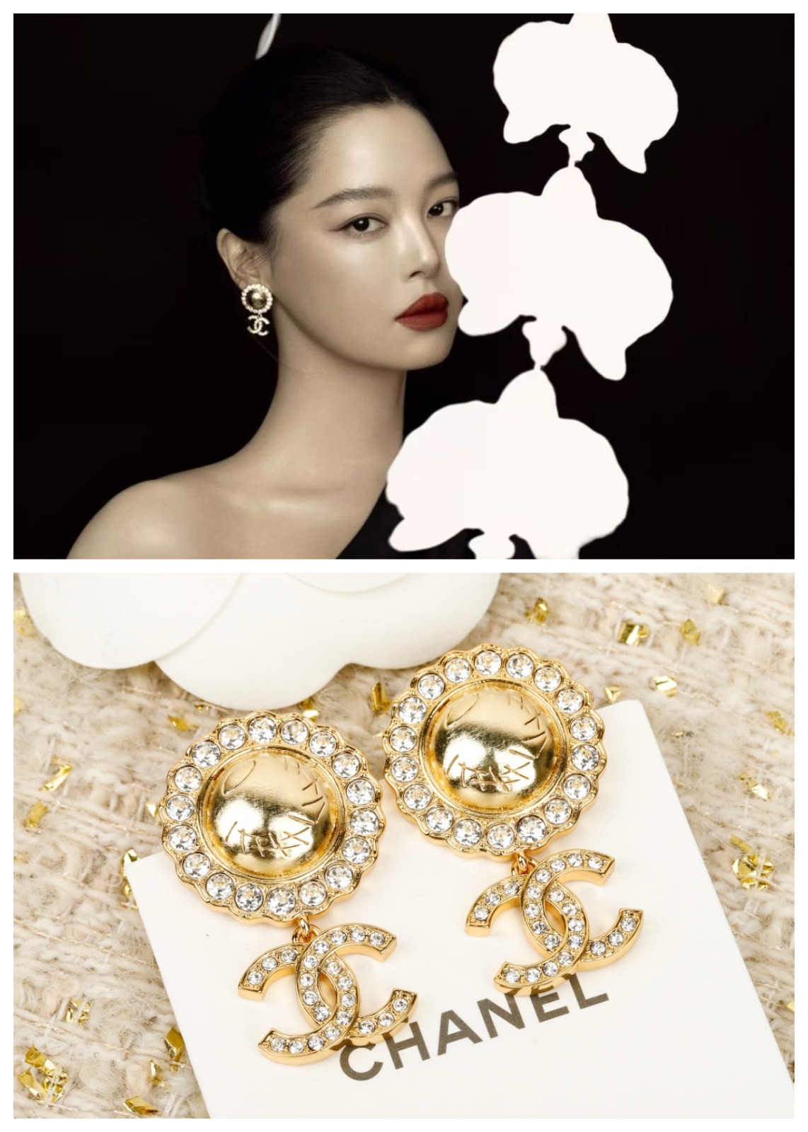 【原單】CHANEL 圓形圍鑽吊CC耳環 連禮盒