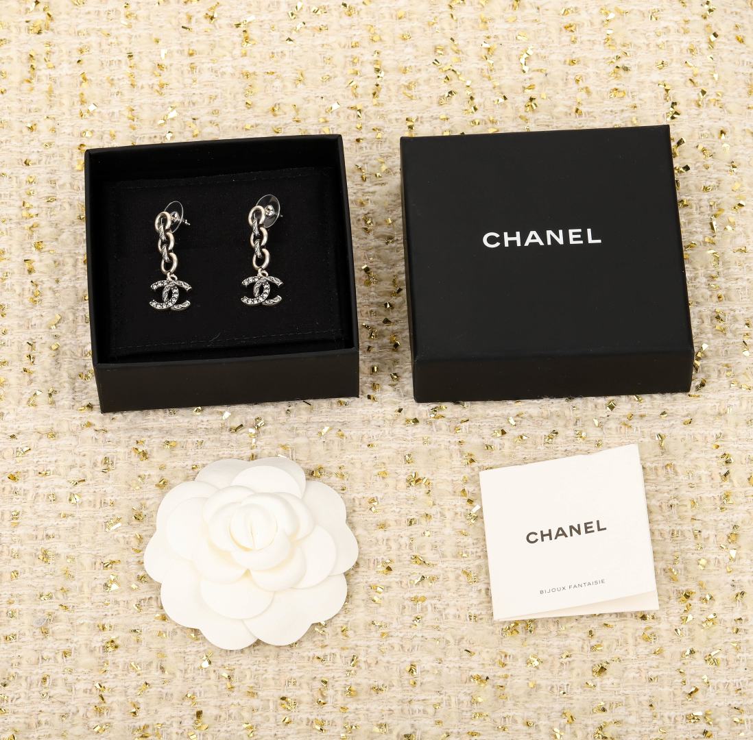 【原單】CHANEL 金屬鏈CC耳環 連禮盒
