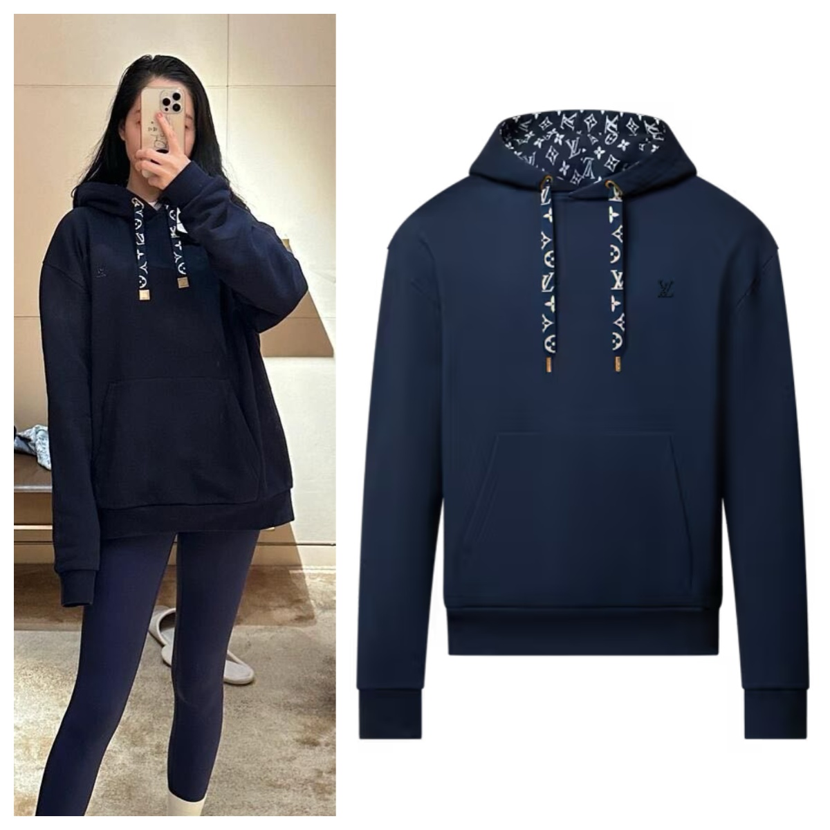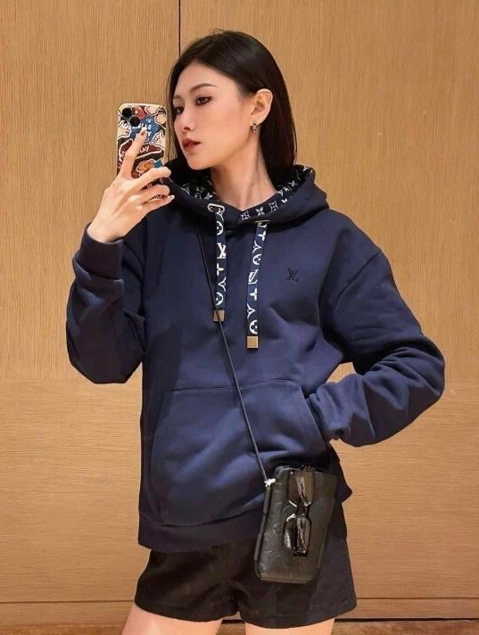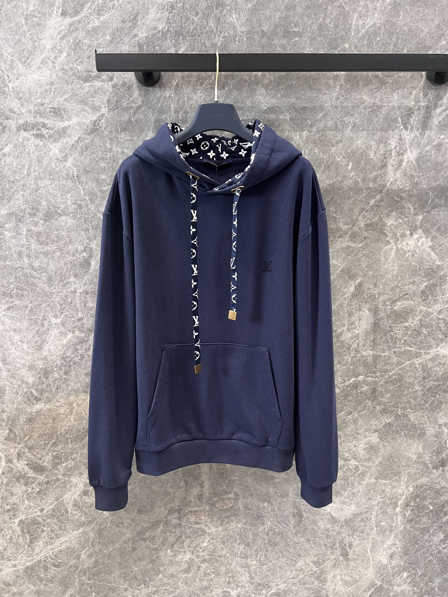 【原單】LV 胸口燙鑽花繩印花連帽衛衣