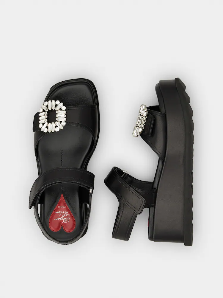 ROGER VIVIER Slydie Viv 厚底水鑽扣涼鞋 連全套鞋盒