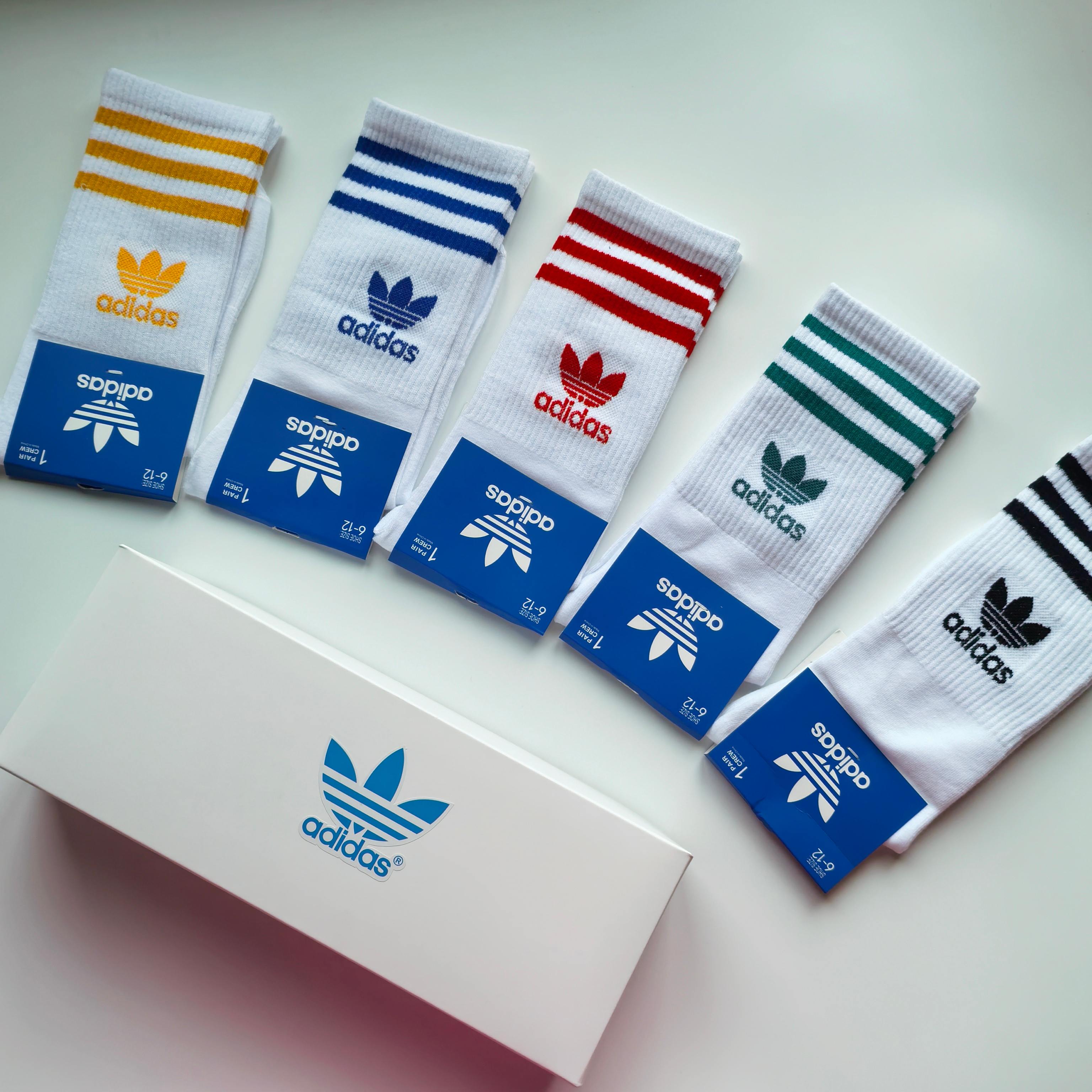 Adidas 白色長筒彩條長筒襪(一盒5對)