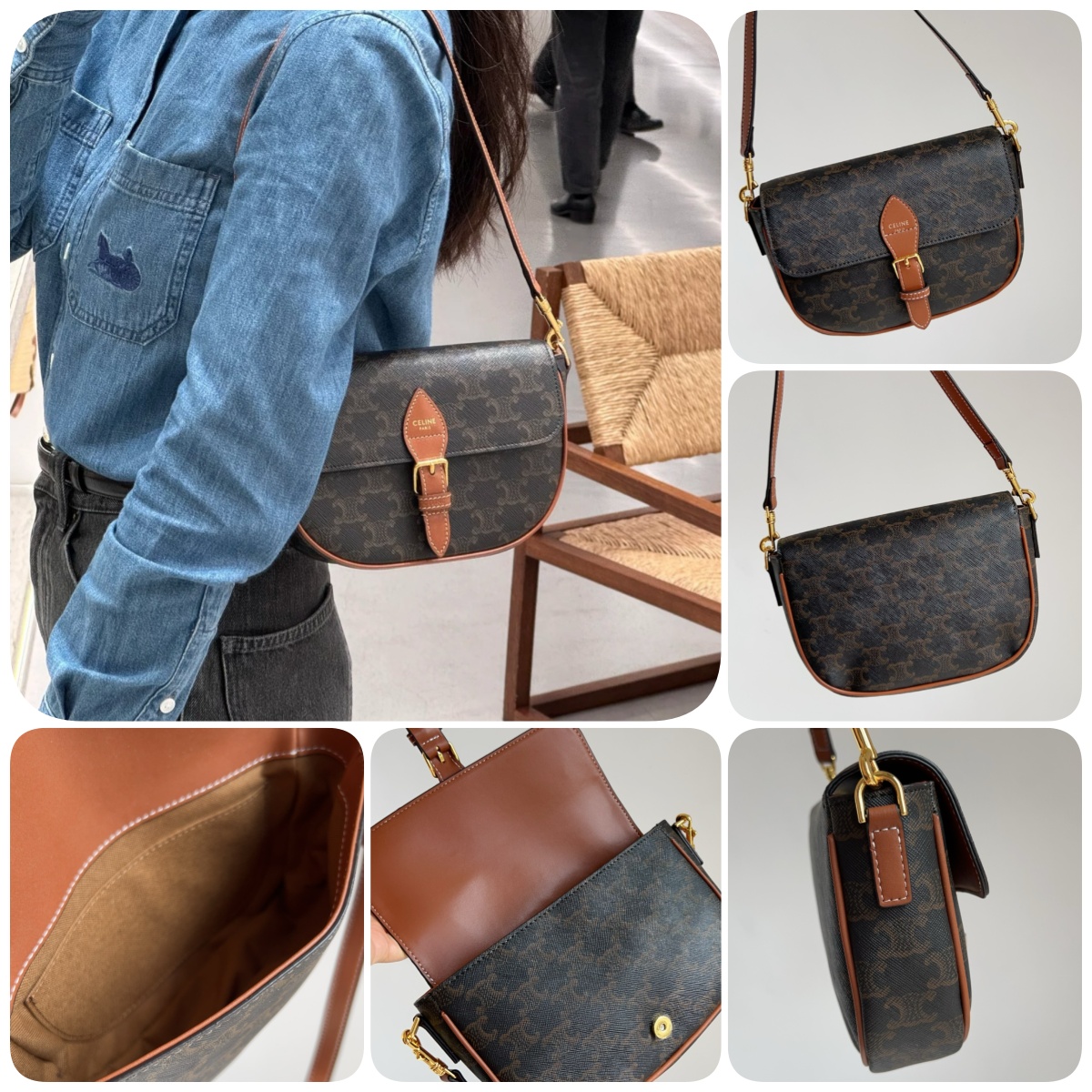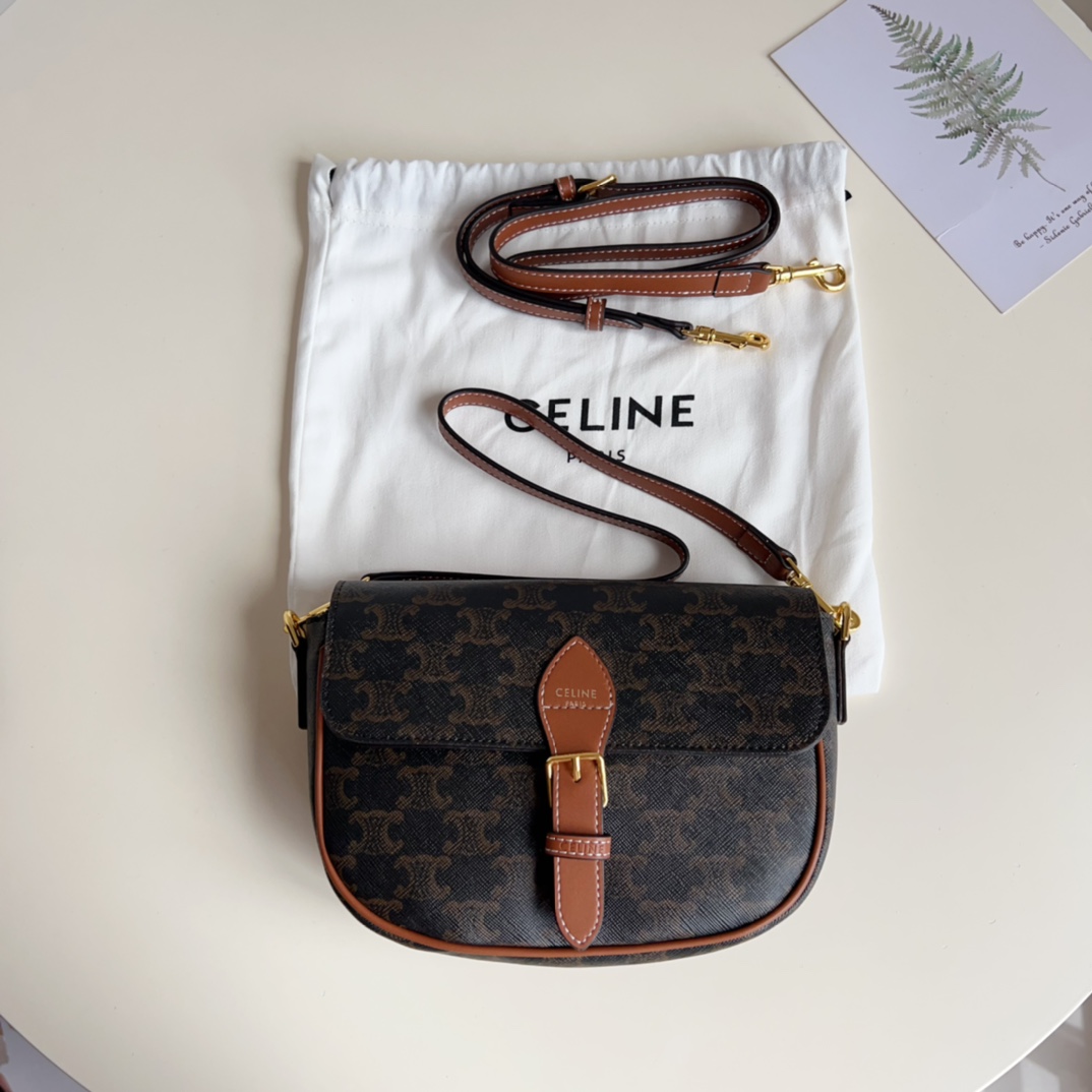 CELINE Folco 標誌印花馬鞍包
